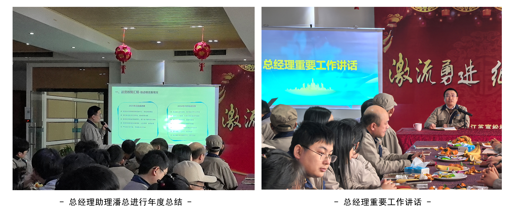 大會伊始,總經理助理潘總對2025年公司工作成績與發展亮點進行了總結;對2025年度優秀員工進行了表彰;總經理也就過去一年的總結發表了講話,肯定了2025年度全體員工的付出,也對2026年的工作進行了部署、提出新期望。