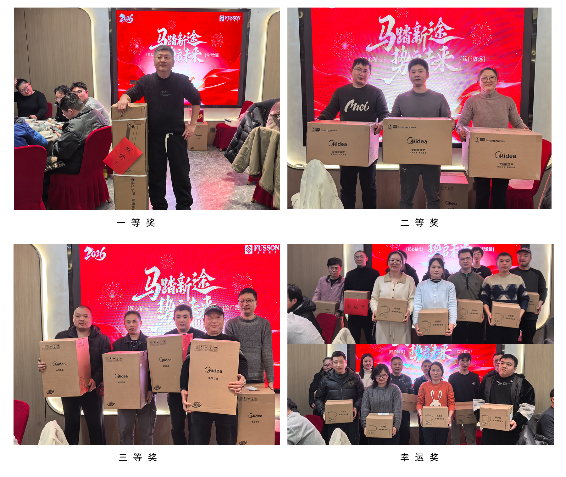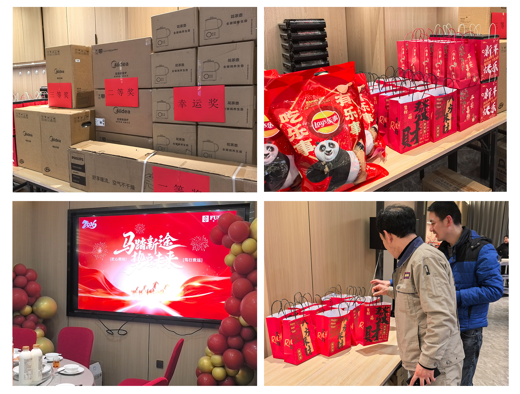 本次答謝晚宴還設置了多輪抽獎環節,在一輪輪的抽獎中,最終近半數的幸運兒抱走了這些禮品。未中獎的小伙伴也獲得了總務準備的小禮品,祝福大家2026新年快樂、事事如意、八方來財!