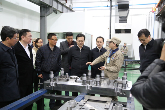 在富松模具科技有限公司,他指出模具行業潛力巨大,要通過生產設備、工藝的轉型升級帶動產品競爭力的不斷提升。